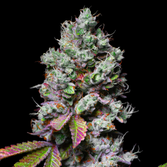 Mochi is an evenly balanced hybrid strain (50% indica/50% sativa) created through a delicious cross of the classic Thin Mint Girl Scout Cookies X Sunset Sherbet strains. This bud is absolutely amazing in the flavor department, with tastes that will leave your mouth watering almost immediately. Mochi has a sweet and fruity berry flavor with a rich sour mint exhale. The aroma is of sharp mint and sour fruits with a touch of creamy earth and nuttiness as the nugs are broken apart and burned. The Mochi high isn’t quite as vibrant as the flavor, with super relaxing effects that will have you kicking it in no time flat. The high starts with a lifted effect that suddenly slams into your mind, filling it with a sense of euphoria and deep felt calm. An influx of creativity comes next, quickly accompanied by a deep sedative effect that washes over your entire body, rendering you totally sleepy and immovable. Thanks to these effects and its high 21-29% average THC level, Mochi is said to be perfect for treating those suffering from conditions such as depression, chronic pain, insomnia, chronic fatigue, and chronic stress or anxiety. This bud has dense spade-shaped forest green nugs with rich purple undertones, bright orange-red hairs, and a coating of beautiful sparkling purple-tinted crystal trichomes.